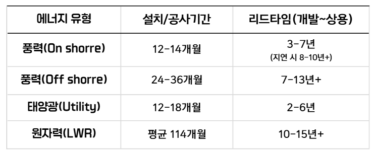 하지만 원전은 에너지원 중에서도 설치·공사기간이 길고, 상용화까지 오랜 시간이 소요된다. 결국 '원전'이라는 대안을 선택하더라도 물리적인 시간이라는 한계가 발생할 수밖에 없다.