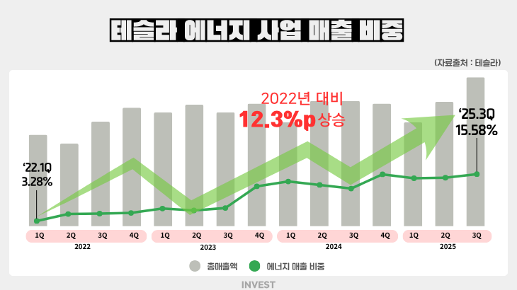 블룸버그NEF(BNEF)는 2025년 전 세계 신규 ESS 설치가 92GW, 양수 발전을 제외하고는 247GWh로 사상 최대를 기록할 것으로 전망했다. 테슬라의 에너지 사업 분기 이익이 해마다 사상 최대치를 기록하고 있다는 점이 이러한 전망에 힘을 실어주고 있다. 테슬라는 전기차 판매 둔화 속에서도 에너지 저장 사업이 실적 방어축 역할을 하면서 여전히 탄탄한 성장세를 보이고 있다.